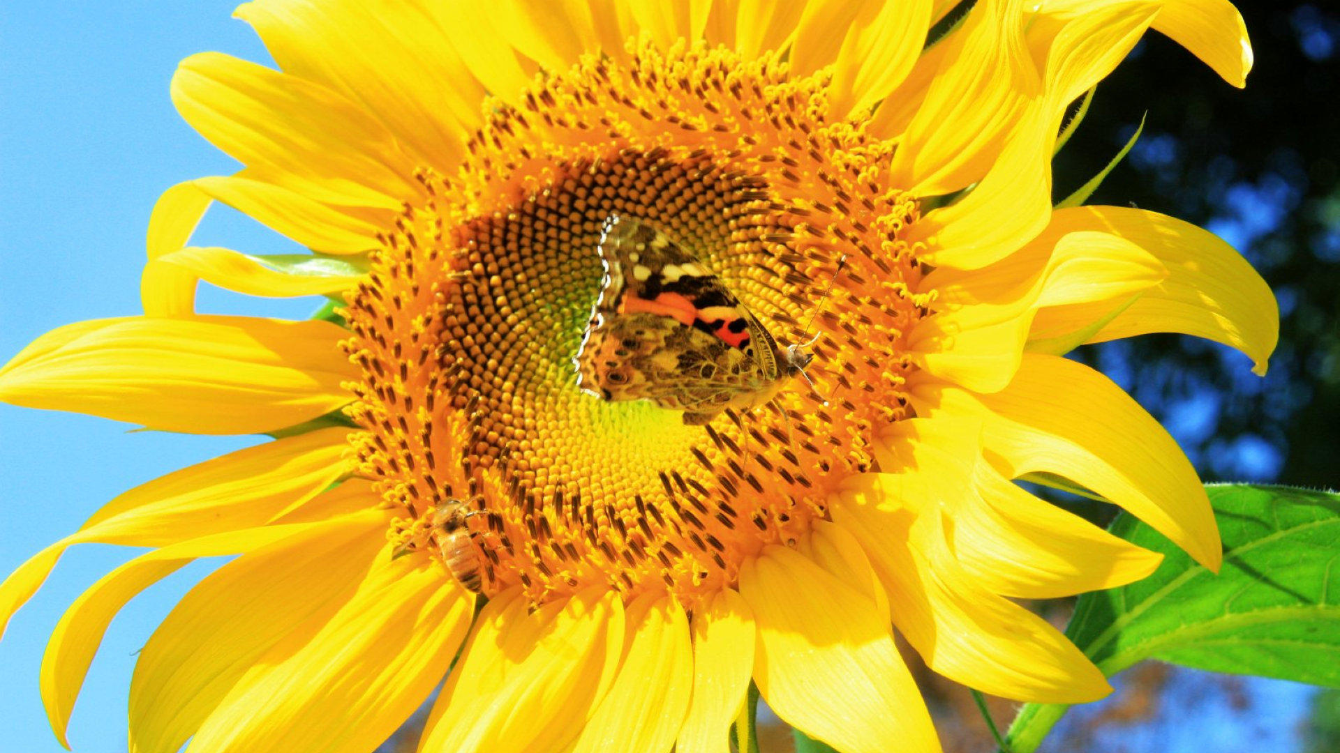 蝴蝶与向日葵高清壁纸