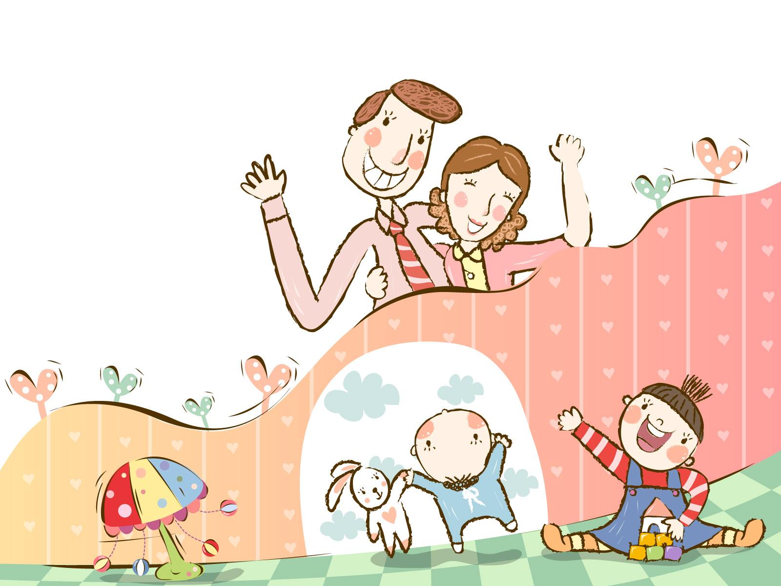 幸福家庭卡通插画壁纸