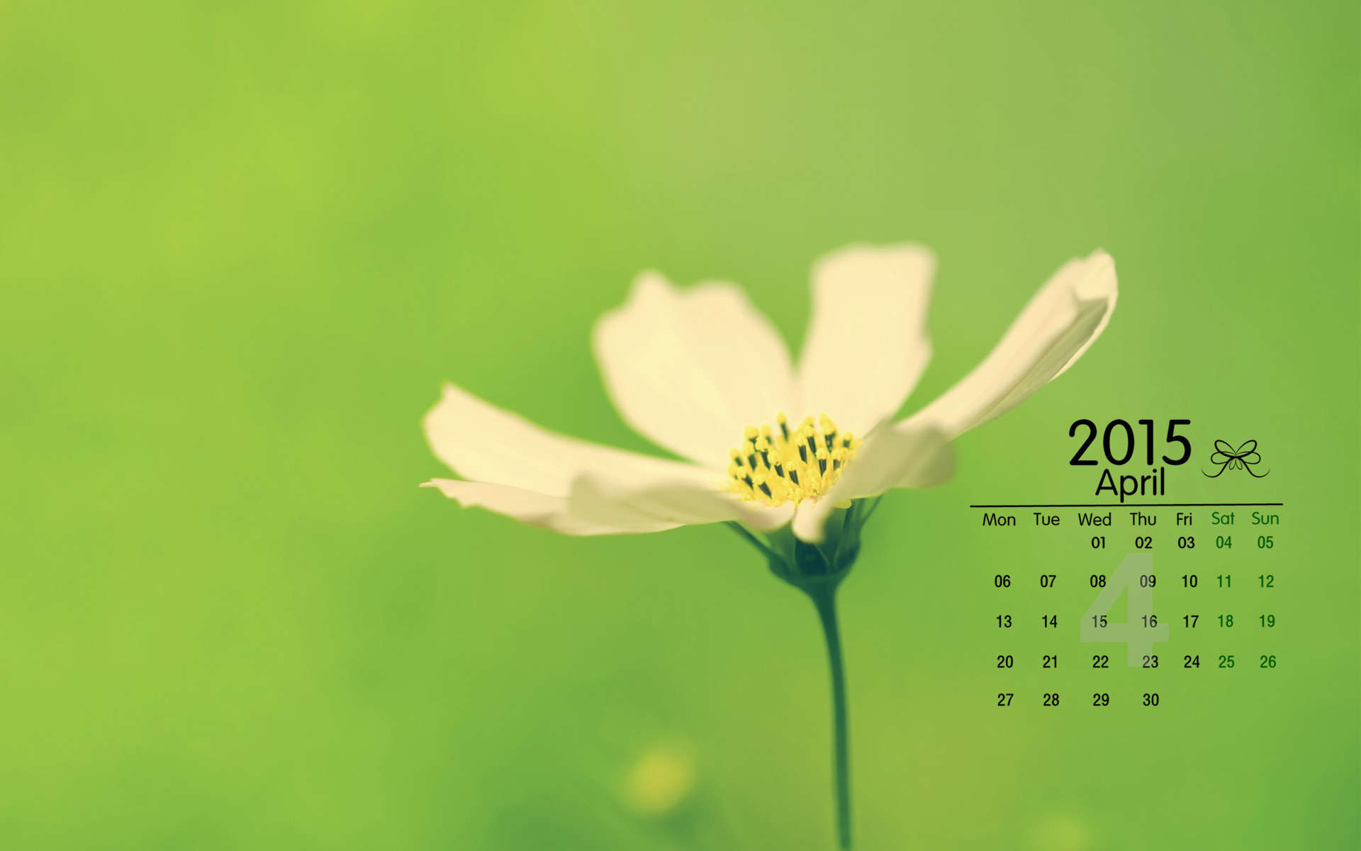 2015年4月绿色清新日历壁纸