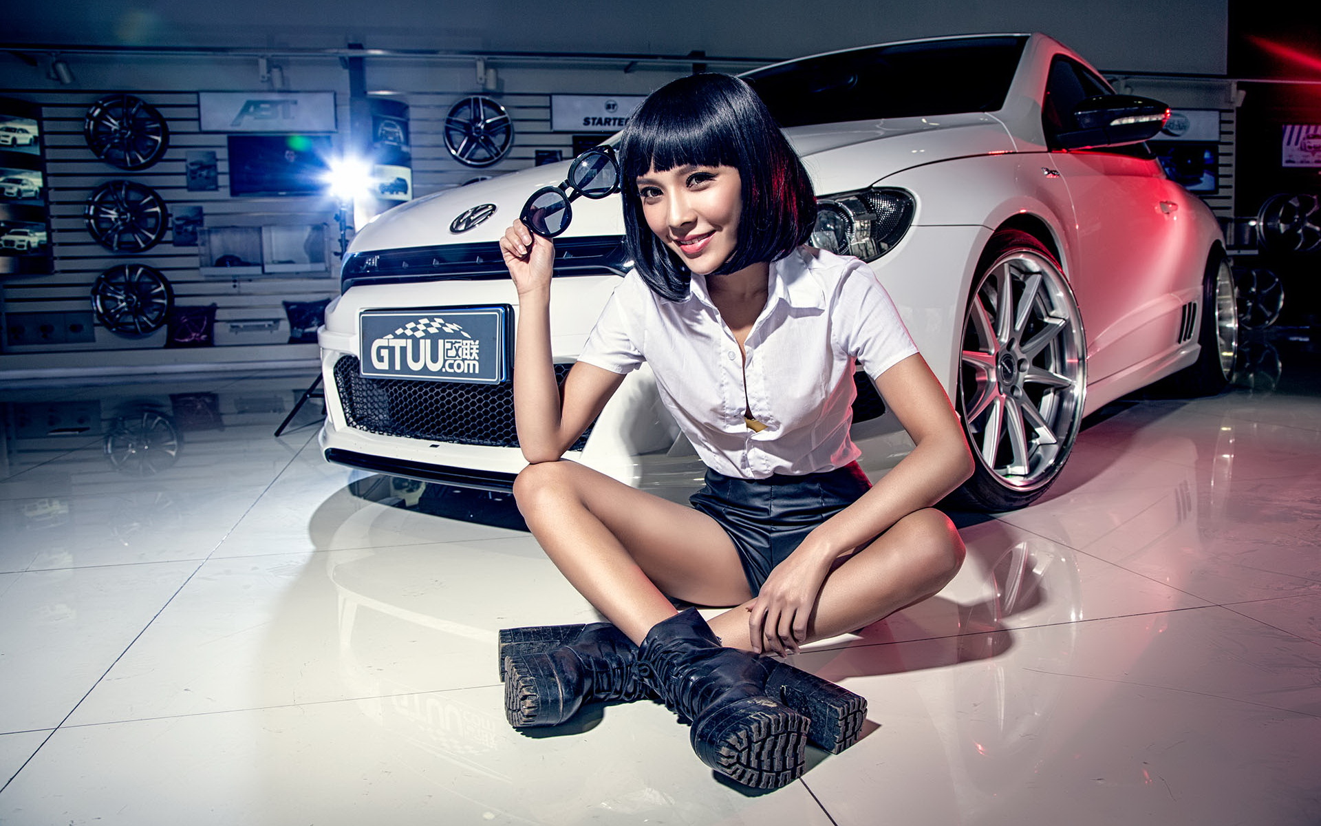 大众尚酷改装车美女模特那朵桌面壁纸