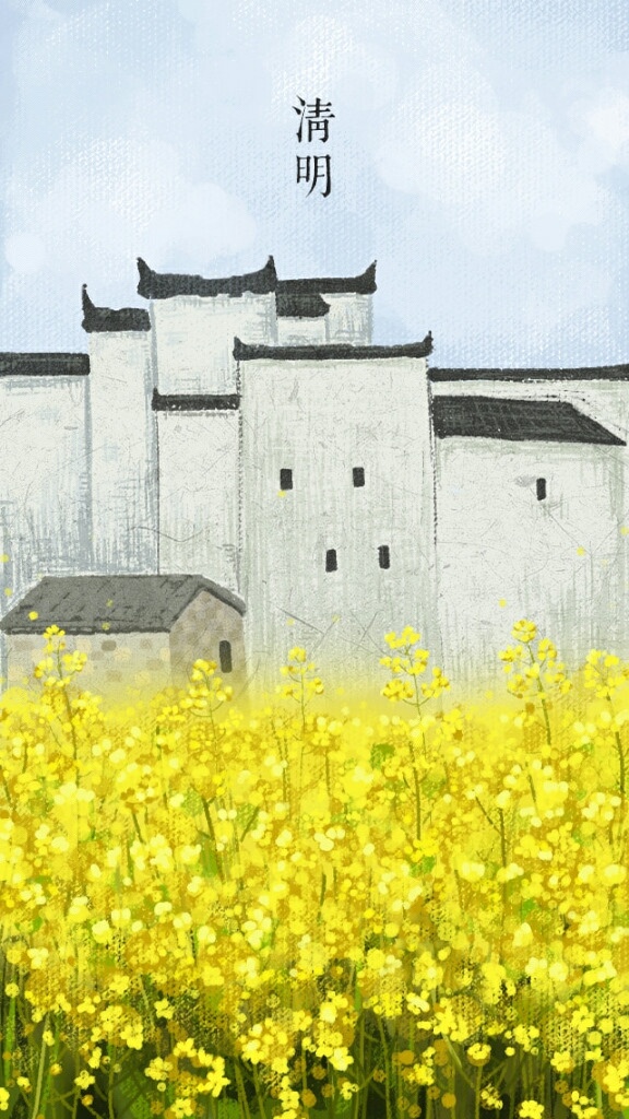 清明节手绘风景背景图片