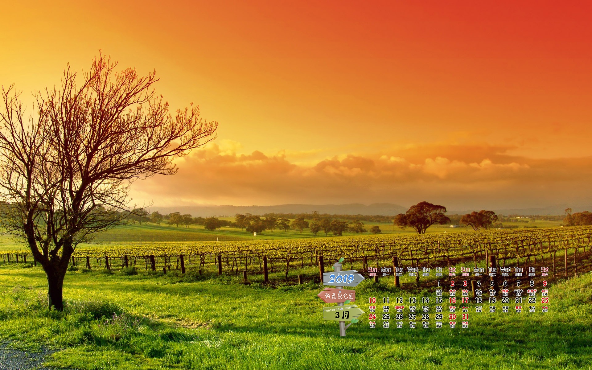 2019年3月春天里的美景日历