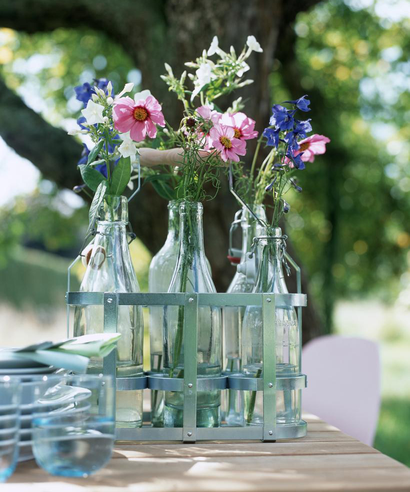 瓶子和木桌子图片