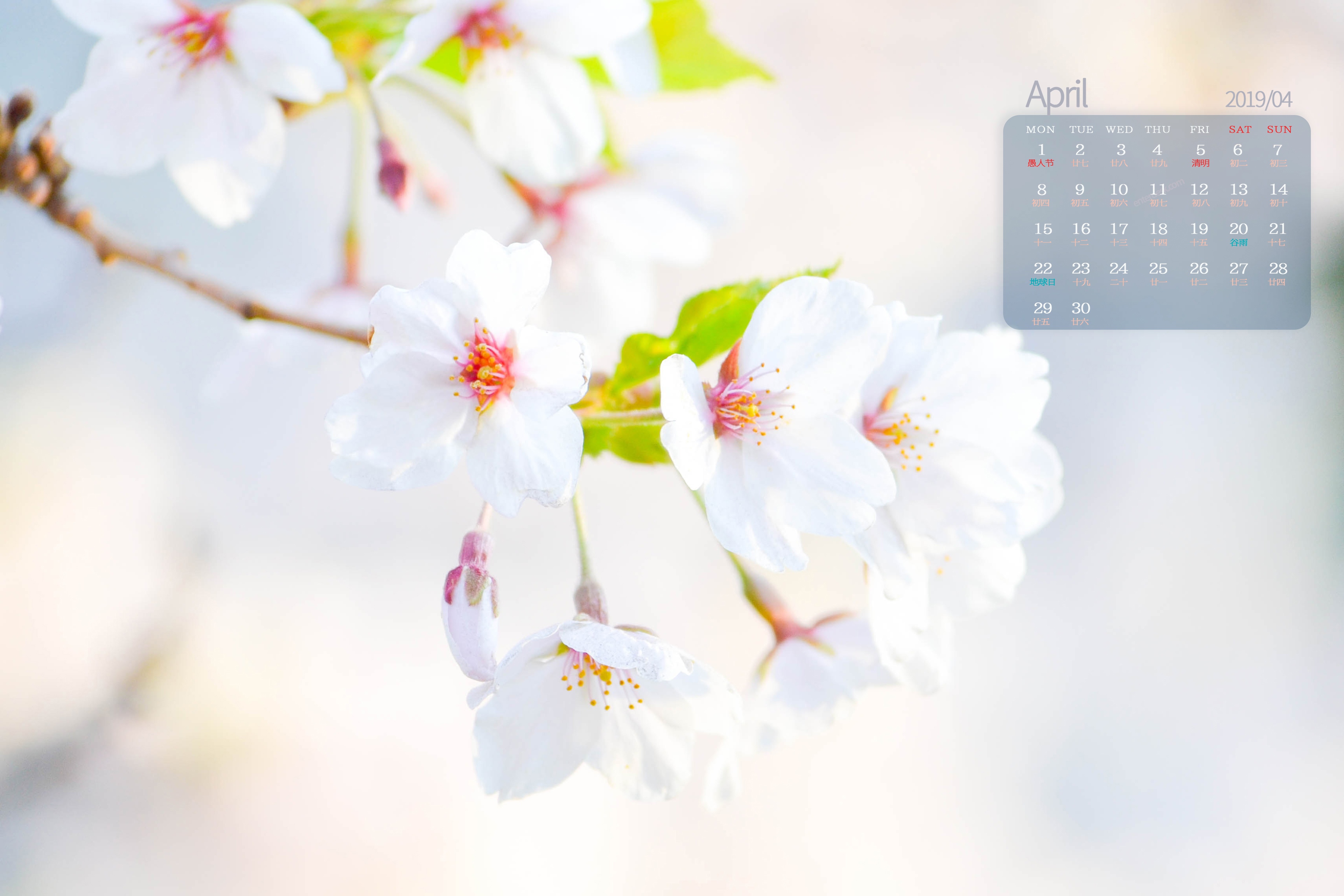 2019年4月唯美淡雅小清新花朵日历