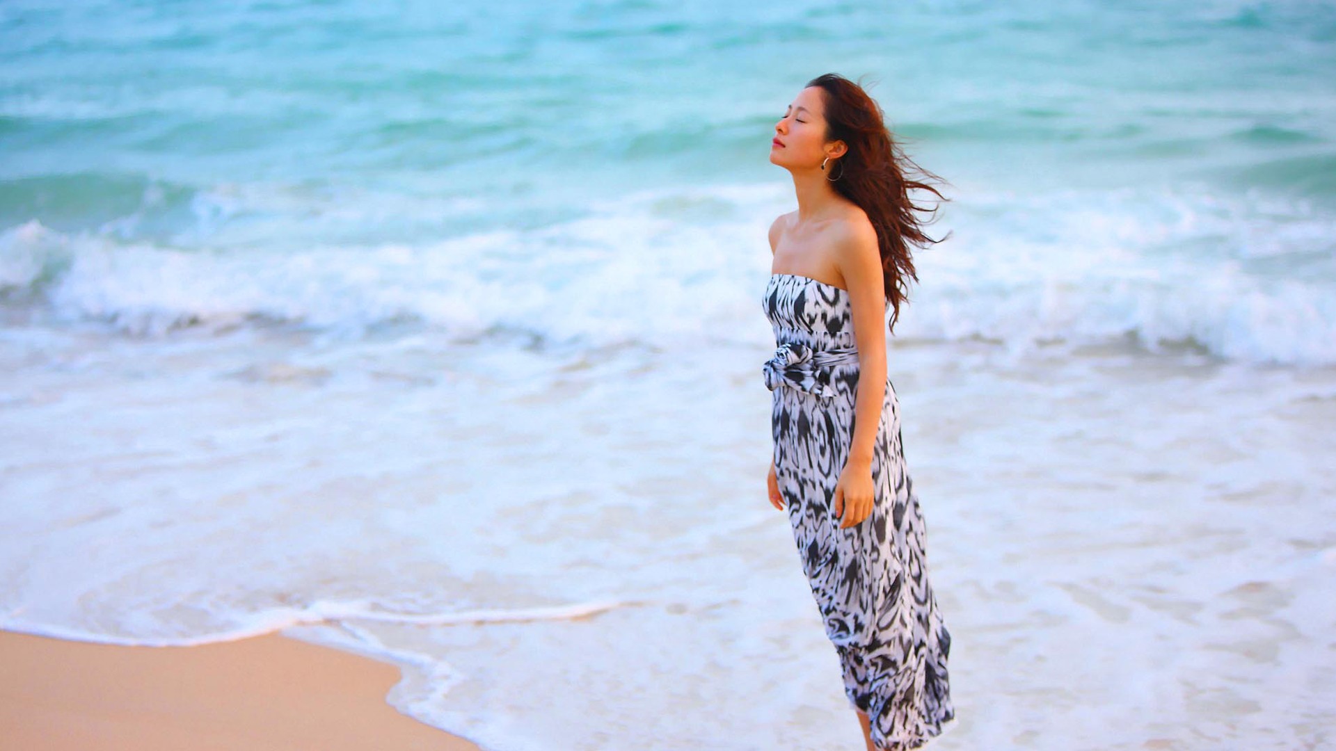 夏天海边吹风的美女壁纸
