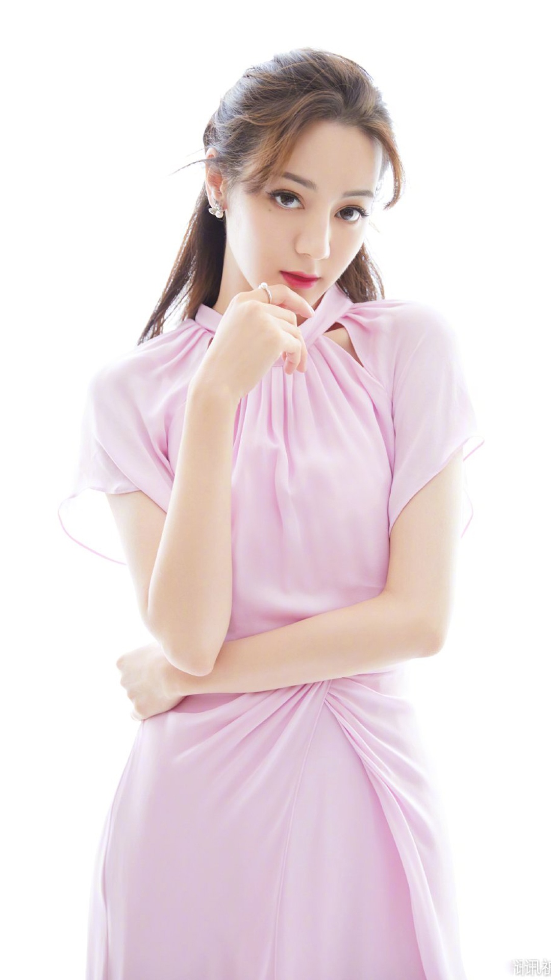 迪丽热巴粉色连衣裙