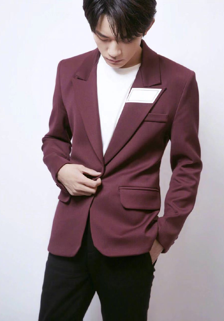 易烊千玺酒红色帅气西装