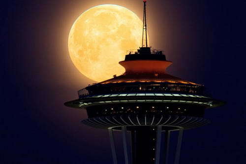 建筑之上的超级月亮图片