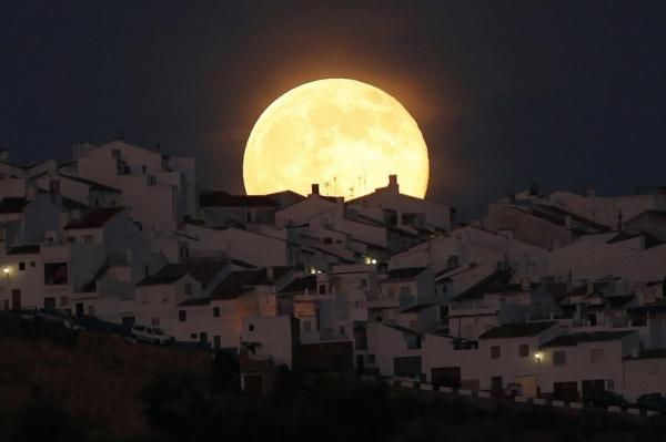 建筑之上的超级月亮图片