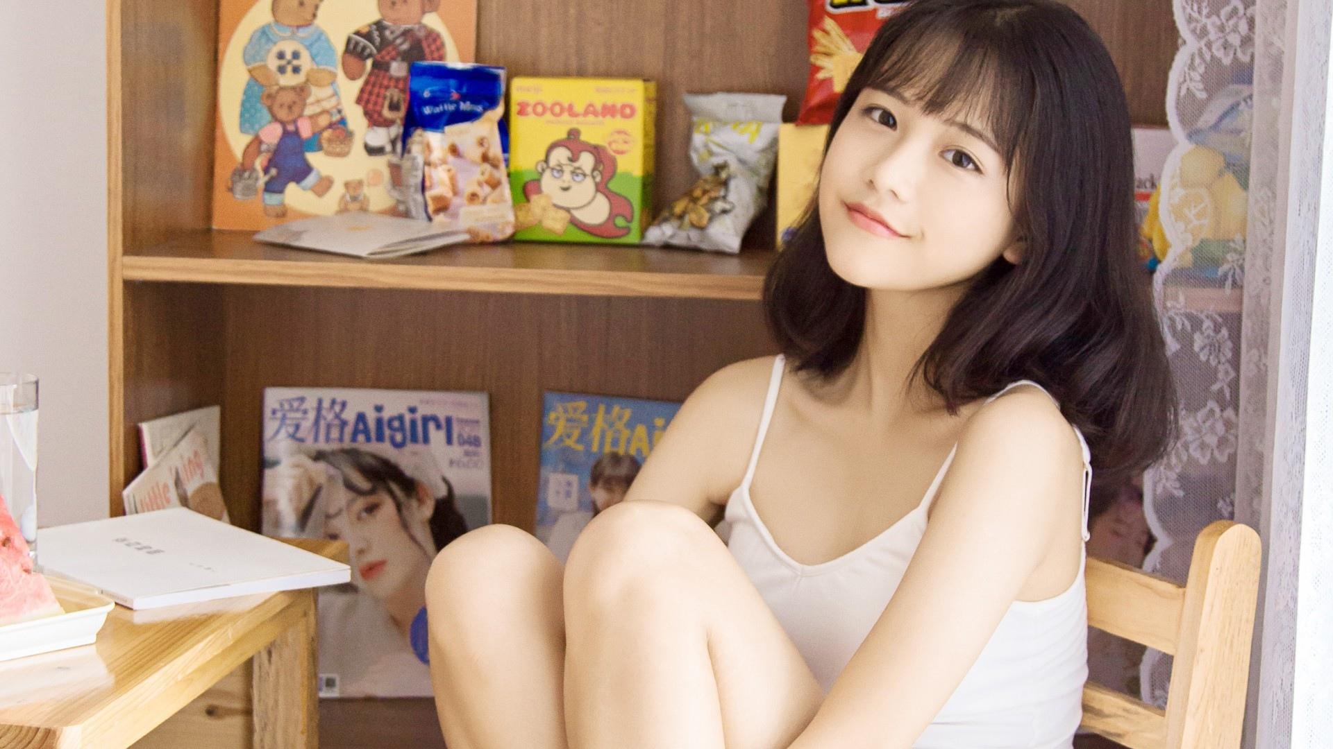 小清新吊带女孩居家可爱干净写真