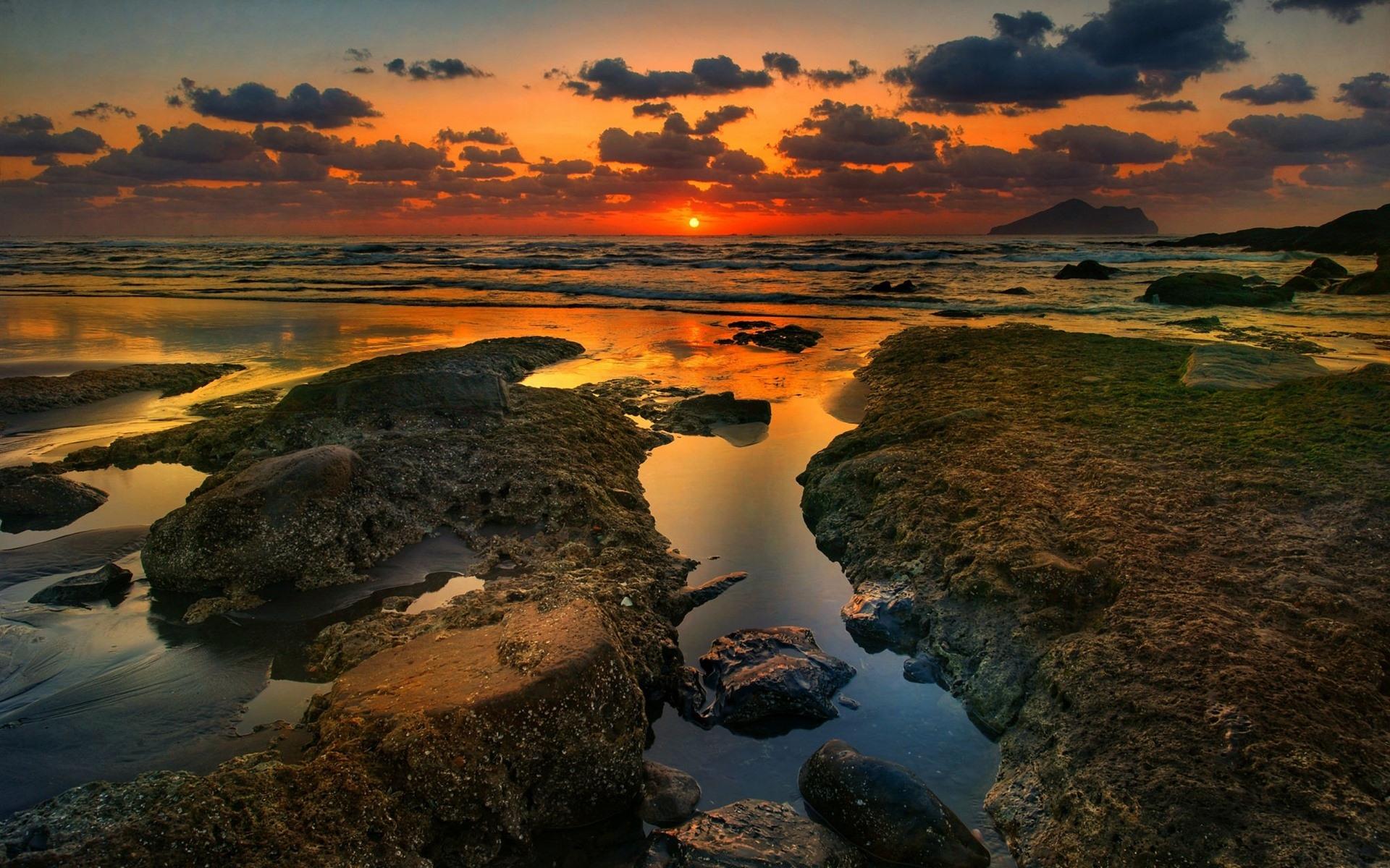 海岸边朝霞迷人的风景