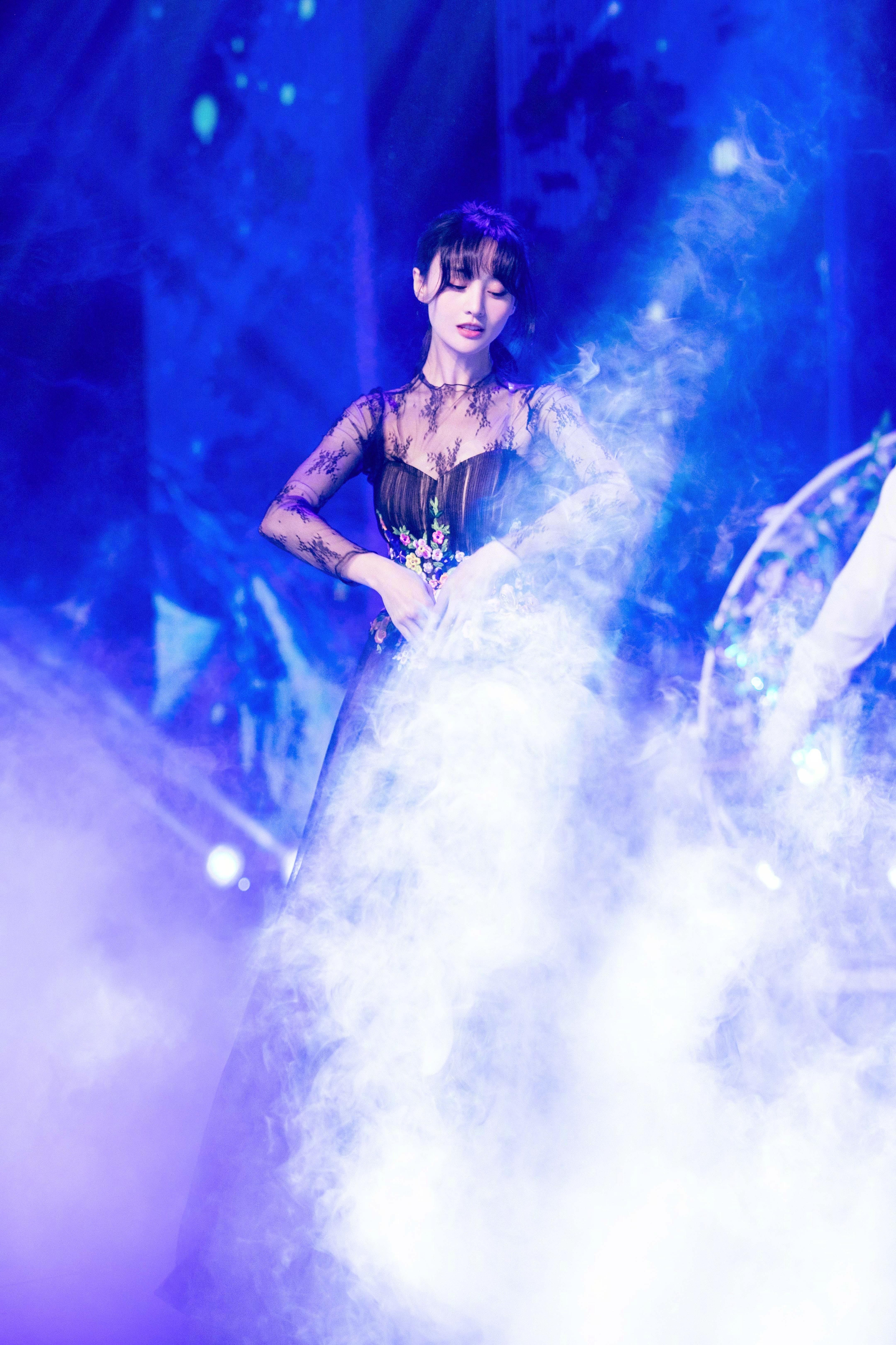 郑爽典雅黑色长裙唯美舞台照