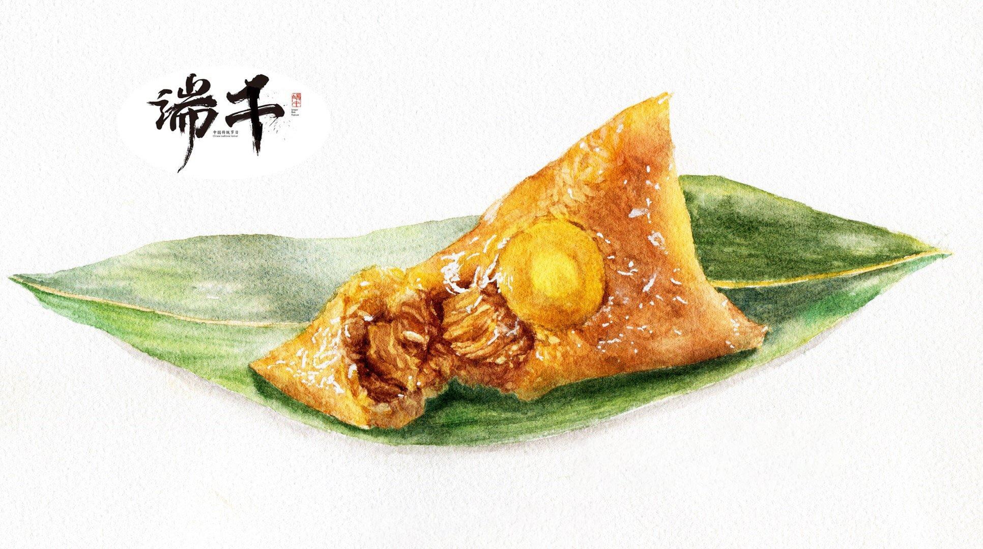 端午安康美味粽子水彩手绘插画