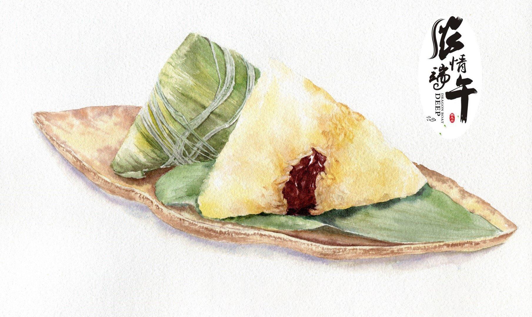 端午安康美味粽子水彩手绘插画