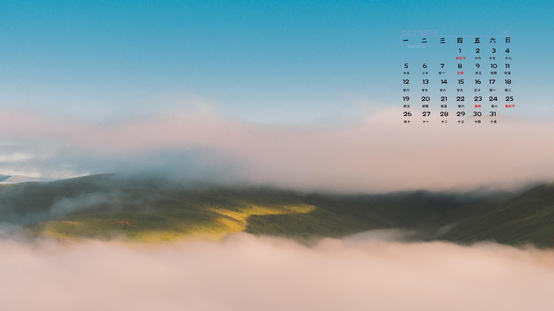 2020年10月色达唯美晨曦雾霭日历