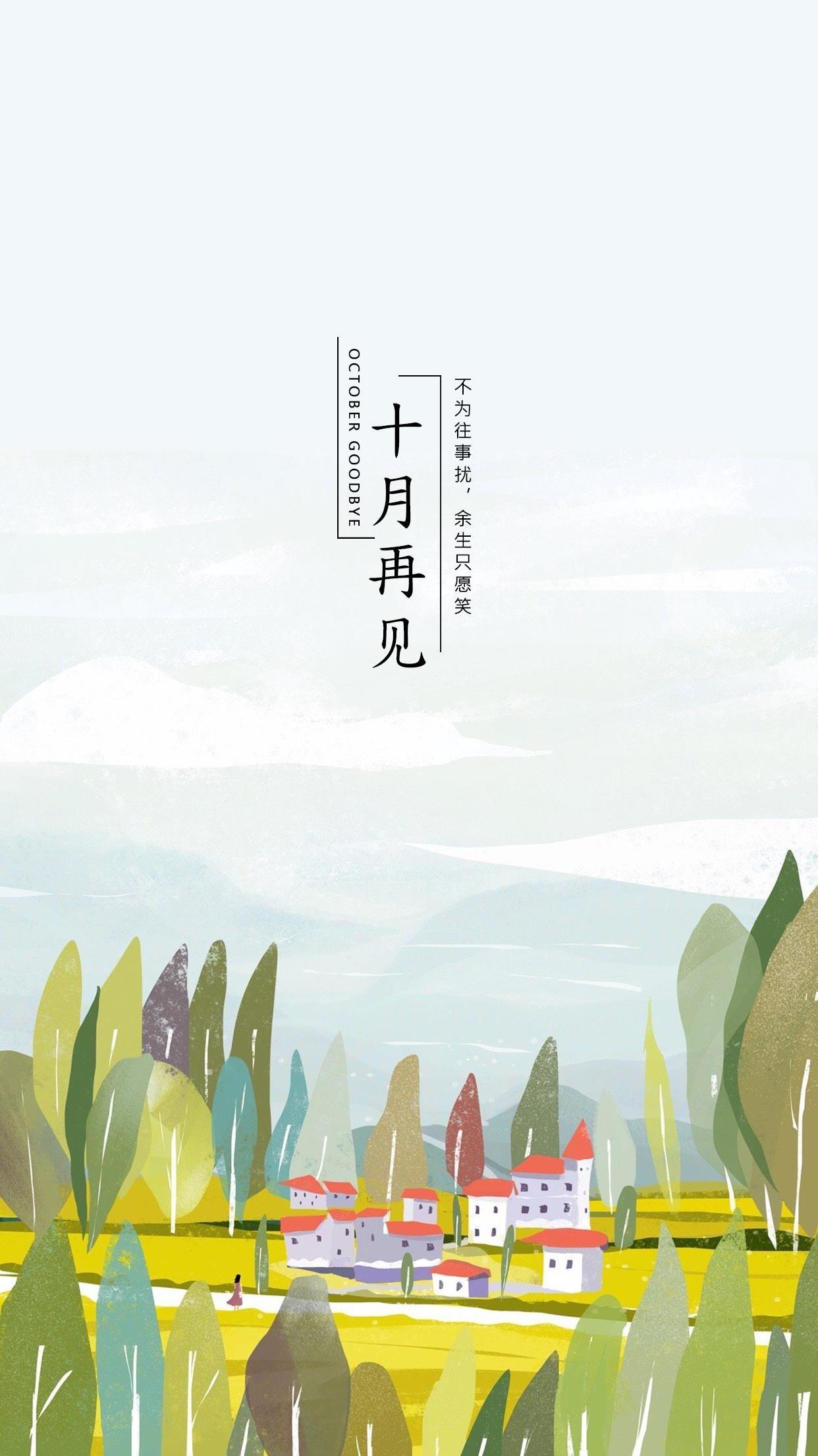 十月再见唯美清新手绘插画