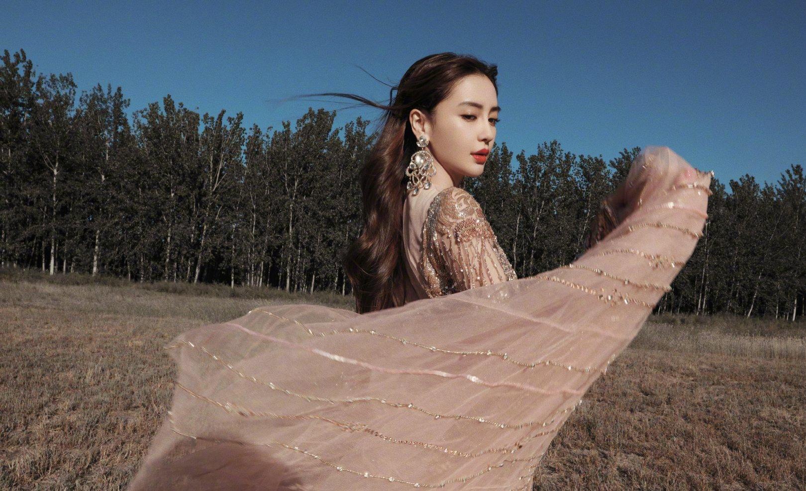 angelababy性感钻石鎏金裙户外迷人写真