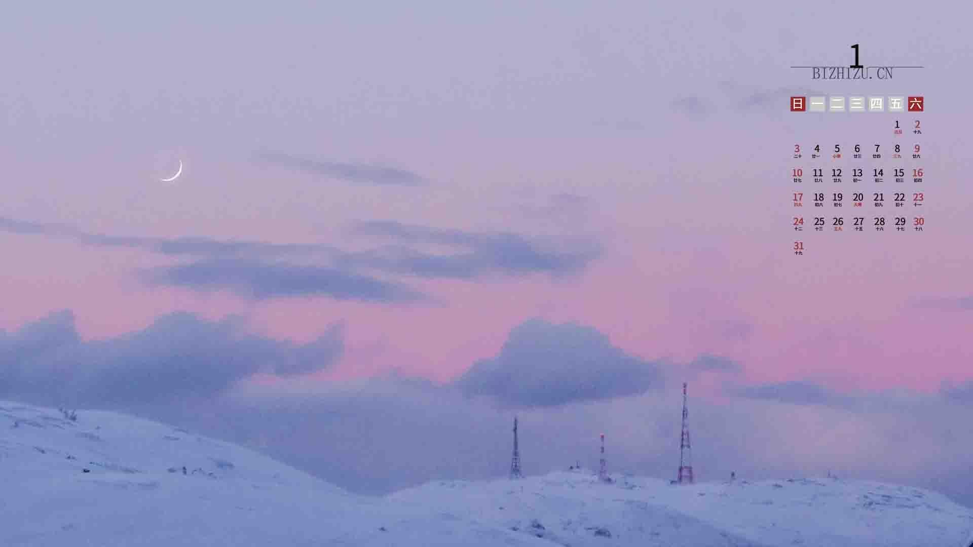 2021年1月北欧干净治愈迷人雪景日历