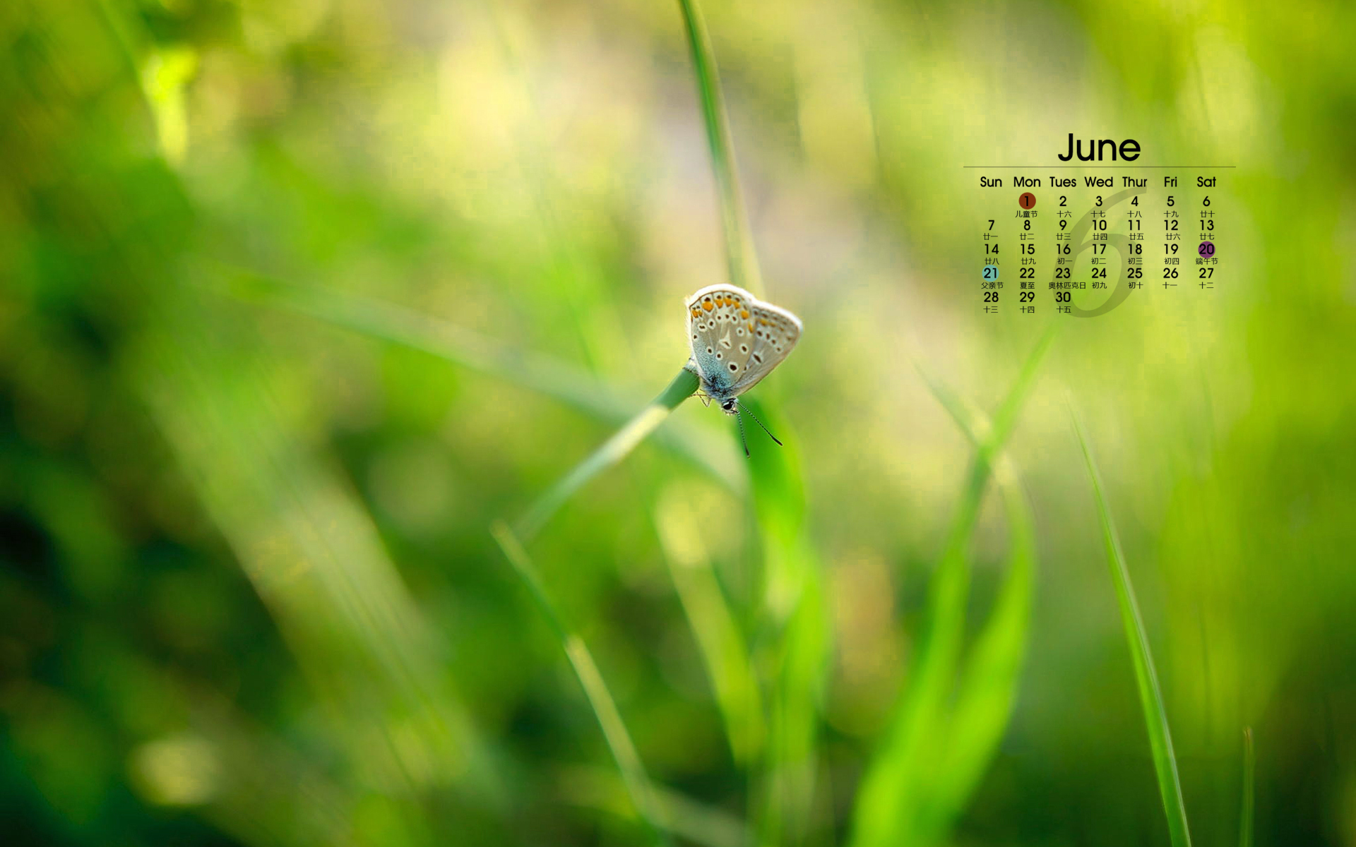 2015年6月绿色护眼日历壁纸