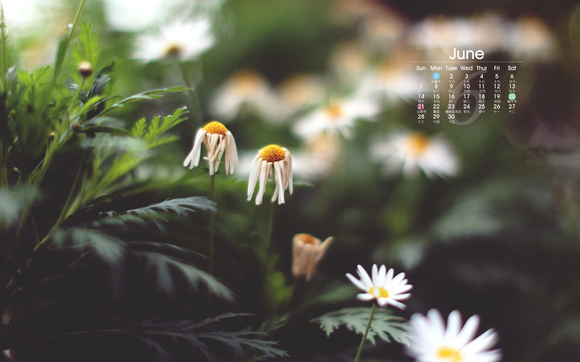 2015年6月绿色护眼日历壁纸