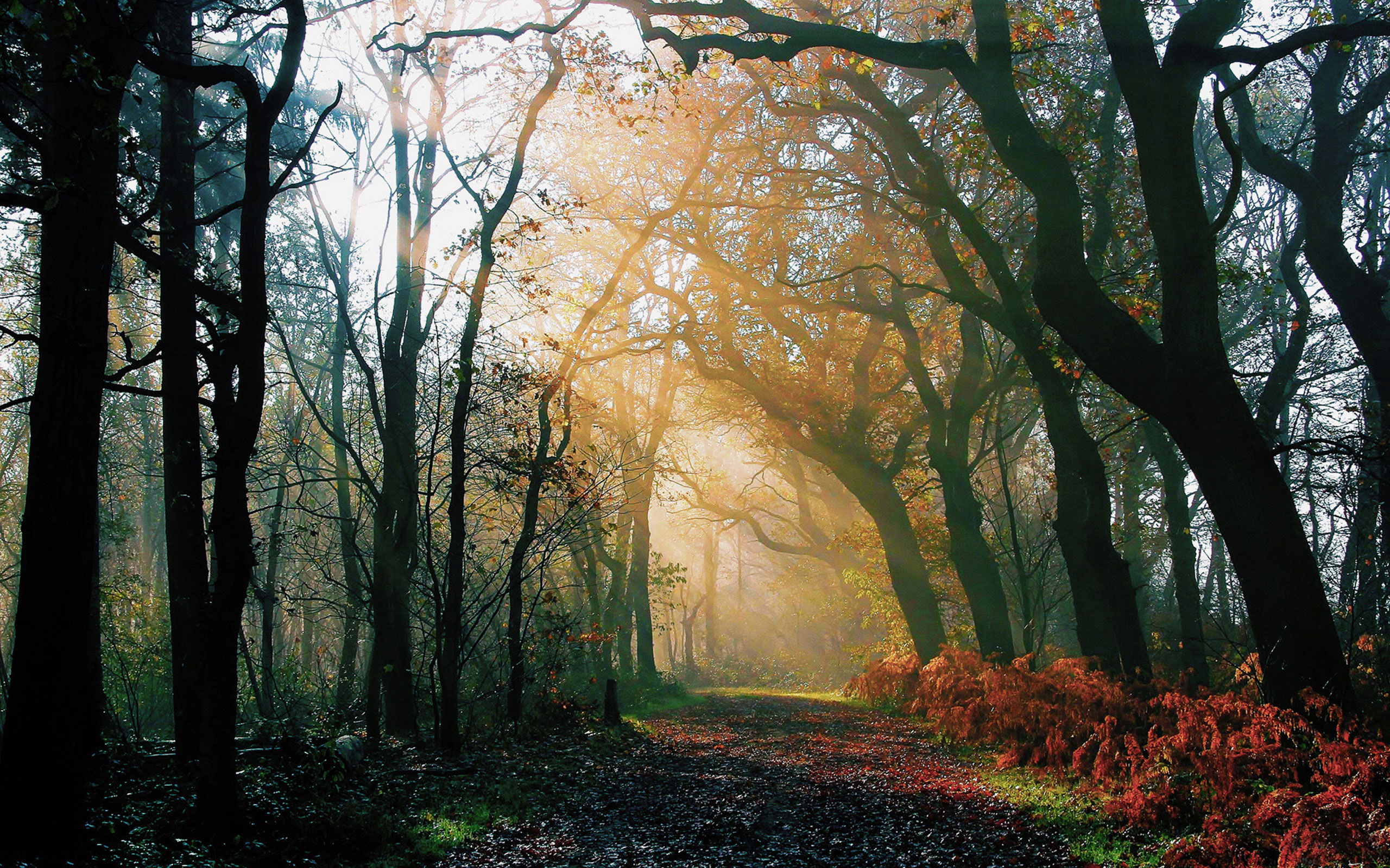 穿过树林的唯美阳光壁纸