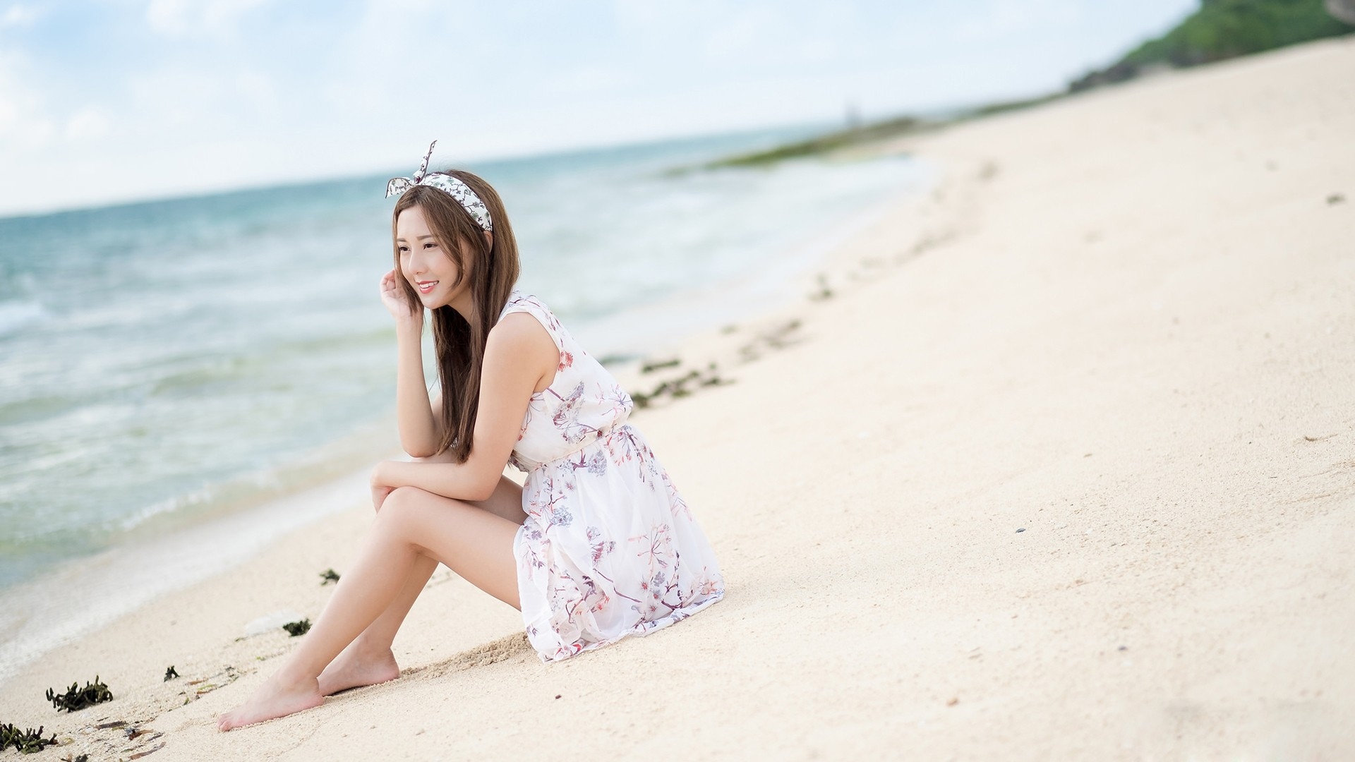 夕阳沙滩泳装模特高清壁纸