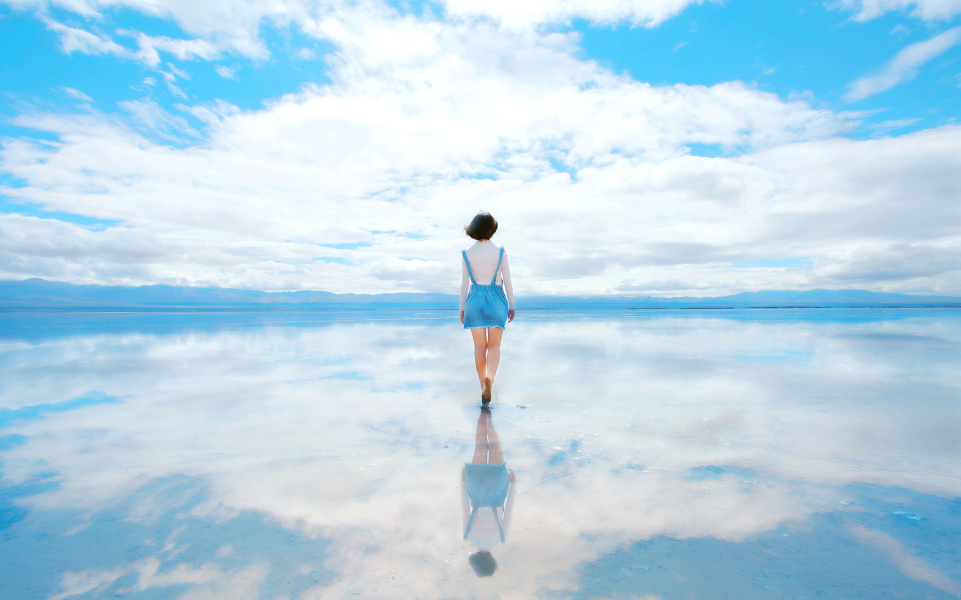 短发美女天空之境唯美摄影壁纸