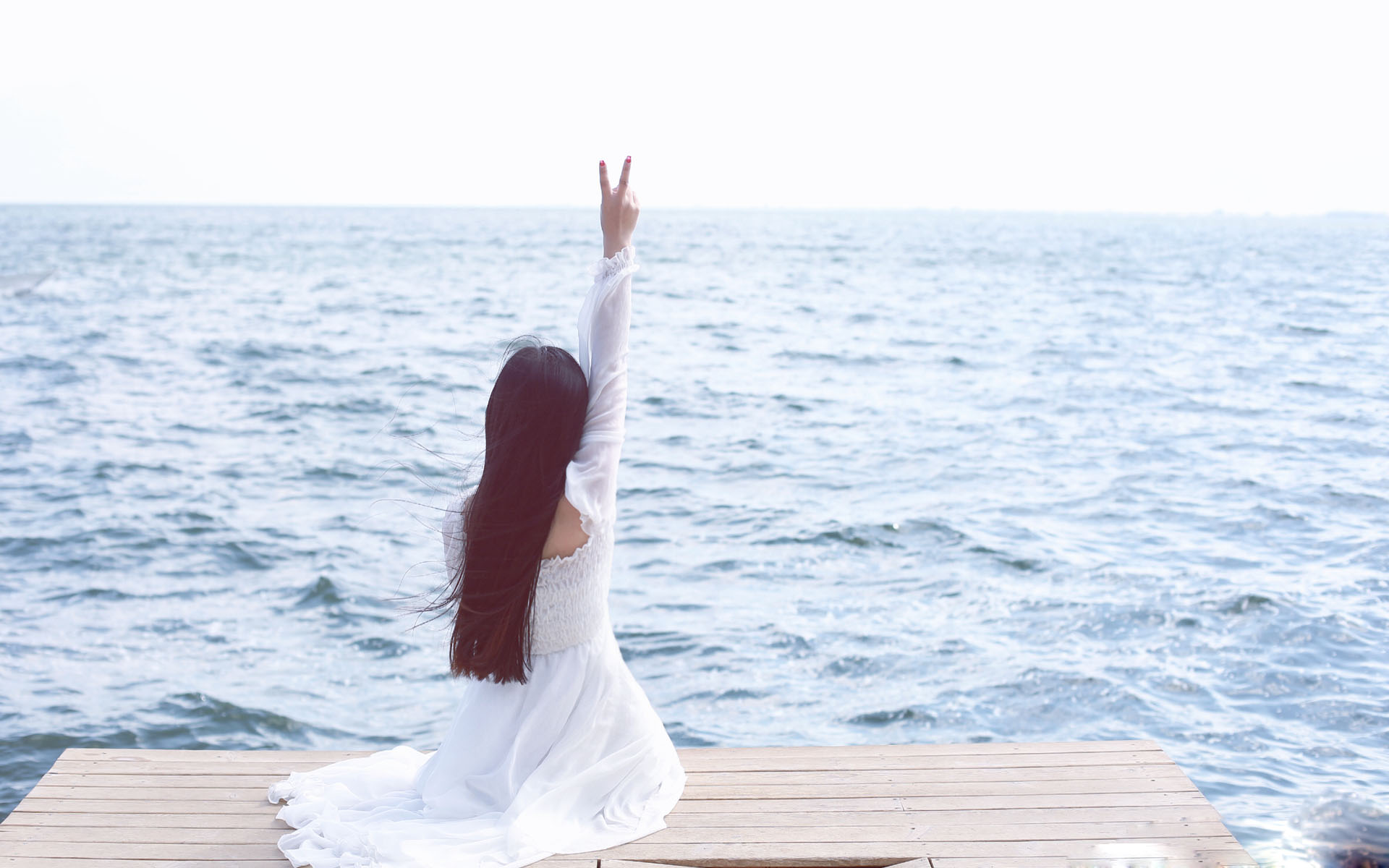 唯美海边清纯美女写真壁纸