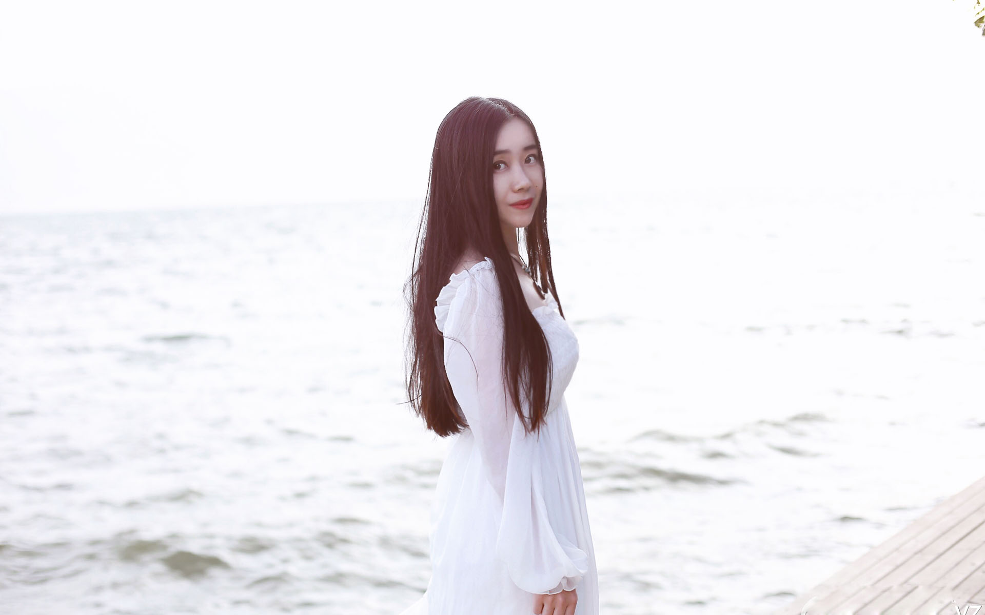 唯美海边清纯美女写真壁纸