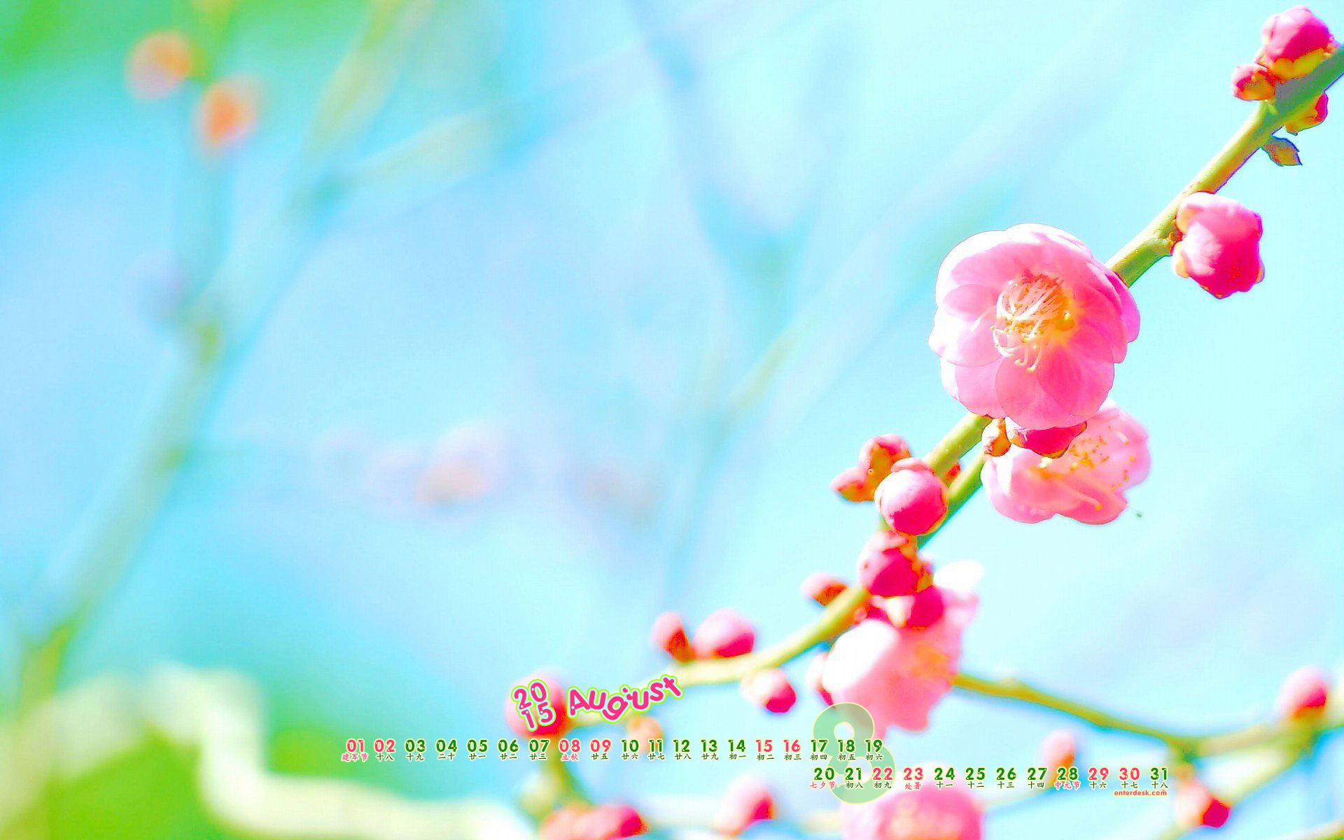 2015年8月绿色护眼日历壁纸