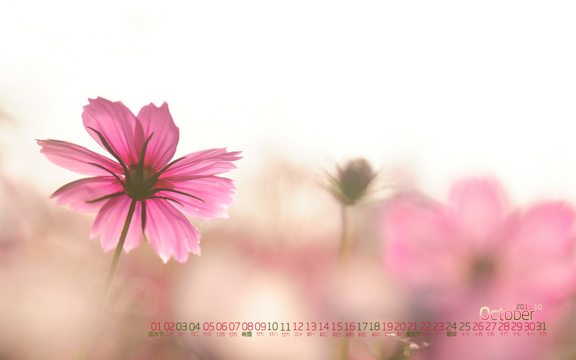 清新的10月花儿日历