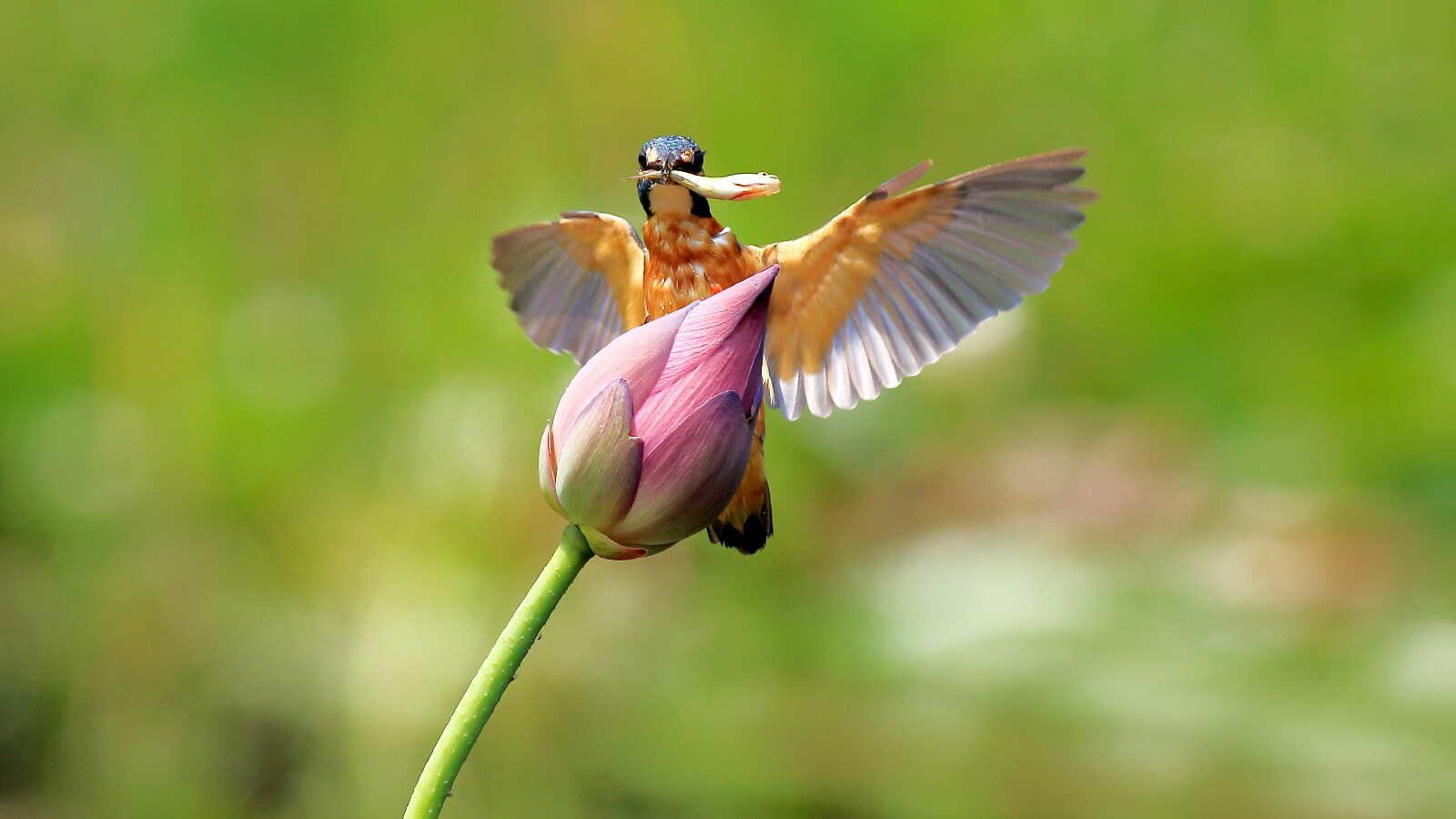 荷花上的翠鸟