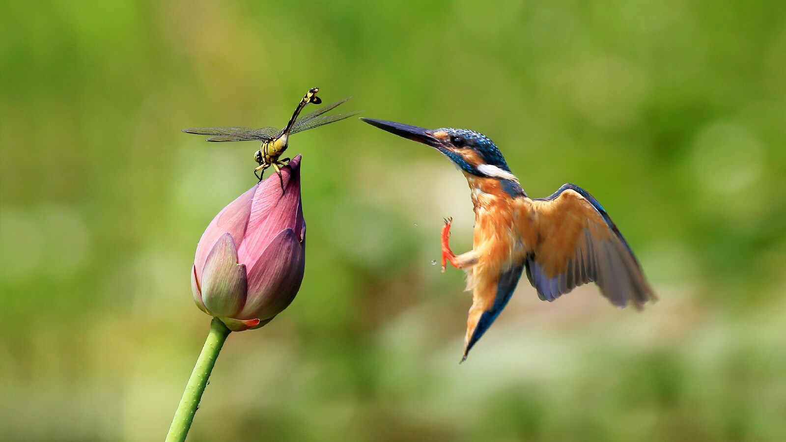 荷花上的翠鸟